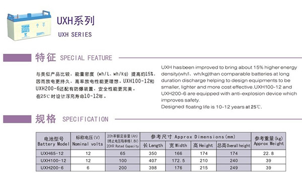湯淺UXH系列電池
